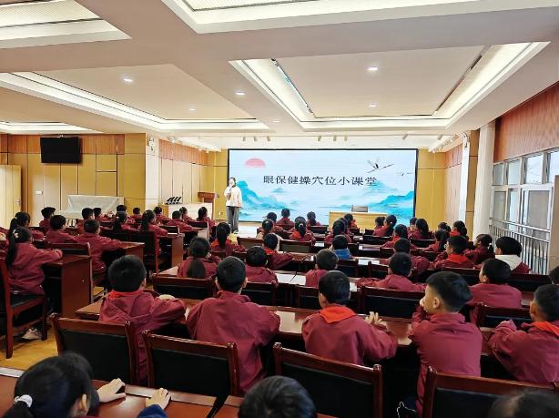 课堂上,医师团队以《眼保健操穴位小课堂》为主题,用孩子们易懂的语言开篇,从眼睛生理结构讲起,清晰剖析近视形成原因与潜在危害,系统普及科学用眼、预防近视的基础常识,帮助孩子们快速建立护眼认知。