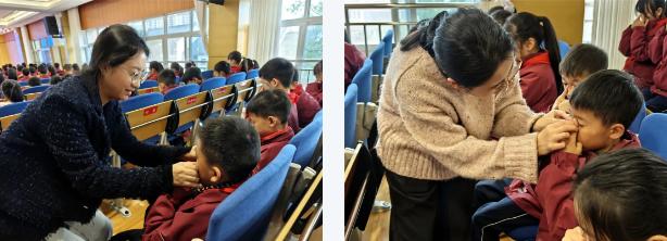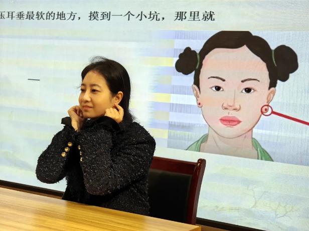 摒弃枯燥理论说教,实操教学成为课程核心亮点。结合“肝开窍于目”“肾藏精,精血同源,上注于目”等传统中医理论,医师们将专业知识转化为童趣表达,逐一拆解攒竹、睛明、四白、太阳穴等眼周关键穴位的定位与保健作用。通过手把手示范指导,带领孩子们找准穴位、掌握正确按压手法,让日常眼保健操真正发挥保健功效。