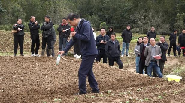 培训结束后,县农技中心干部深入田间地头开展“手把手”教学,从油菜育苗移栽株距把控、小麦播种密度调节,到品种搭配技巧逐环节演示。针对“播栽后遇雨怎么办”“不同土壤如何调整播种深度”等高频提问,技术人员现场答疑,确保各项技术要点“听得懂、学得会、用得上”。 县农技中心技术干部侯孝汉提醒:“今年秋播期间持续强降雨,导致田湿泥烂,给秋播生产带来许多不利影响。油菜直播期已过,大田移栽和小麦播种要抢在11月20日前完成!后期可能还有降雨,提醒广大农民朋友在播栽前开好三沟,做好排水散墒。”