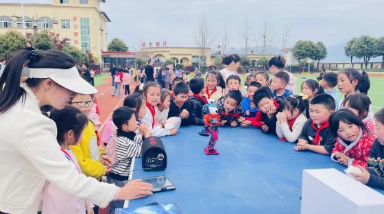 “科技大篷车”车载展品让同学们“沉浸式”体验科技产品,感受科技魅力。学生们纷纷围在各类器材旁,亲自操控感受科技声、光的奇妙,用科学知识打开心中谜团。志愿者结合展品讲解原理,将抽象概念转化为直观体验,引导学生在动手的同时积极思考。机器狗表演、机器人舞蹈、人机对弈等科技展演,拉近了科技与孩子的距离,将孩子们对科技的热情推到高潮,孩子们脸上洋溢着对科学探索的好奇与欣喜。